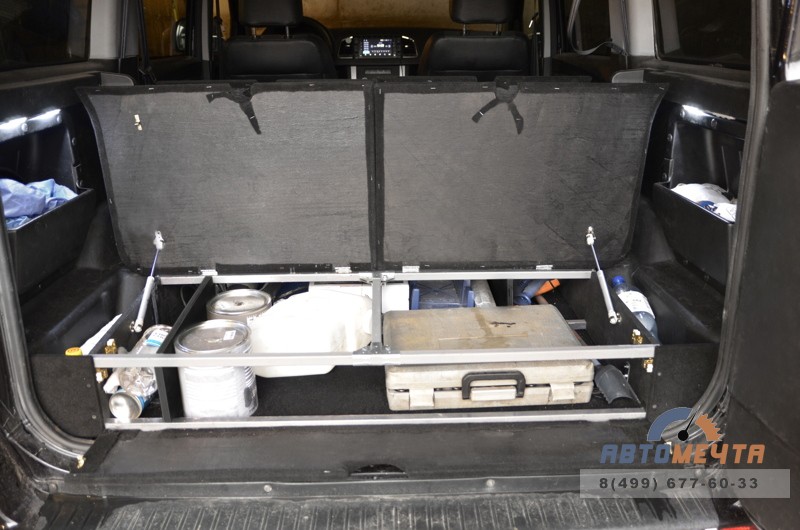 - Органайзер в багажник или спальник-полка – незаменимая доработка для тех, кто планирует ночевку в машине или перевозить крупногабаритные грузы, требующие большую ровную площадку. Конструкция дает возможность организовать массу вещей в багажном пространстве с сохранением пустого багажника. Органайзер имеет особо расположенные отделения, которые позволяют перевозить не только много малогабаритных вещей, а и достаточно длинные предметы (лопата, садовый инвентарь, монтировки, домкраты, доски и пр.). Багажный тюнинг УАЗ Патриот начинается именно с установки органайзера.