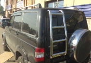 Лестница на УАЗ Патриот значительно облегчает подъем и спуск багажа на грузовую площадку или бокс, а также позволяет с легкостью дотянуться к любому участку крыши, что положительно отражается в уходе за состоянием крыши и багажника.