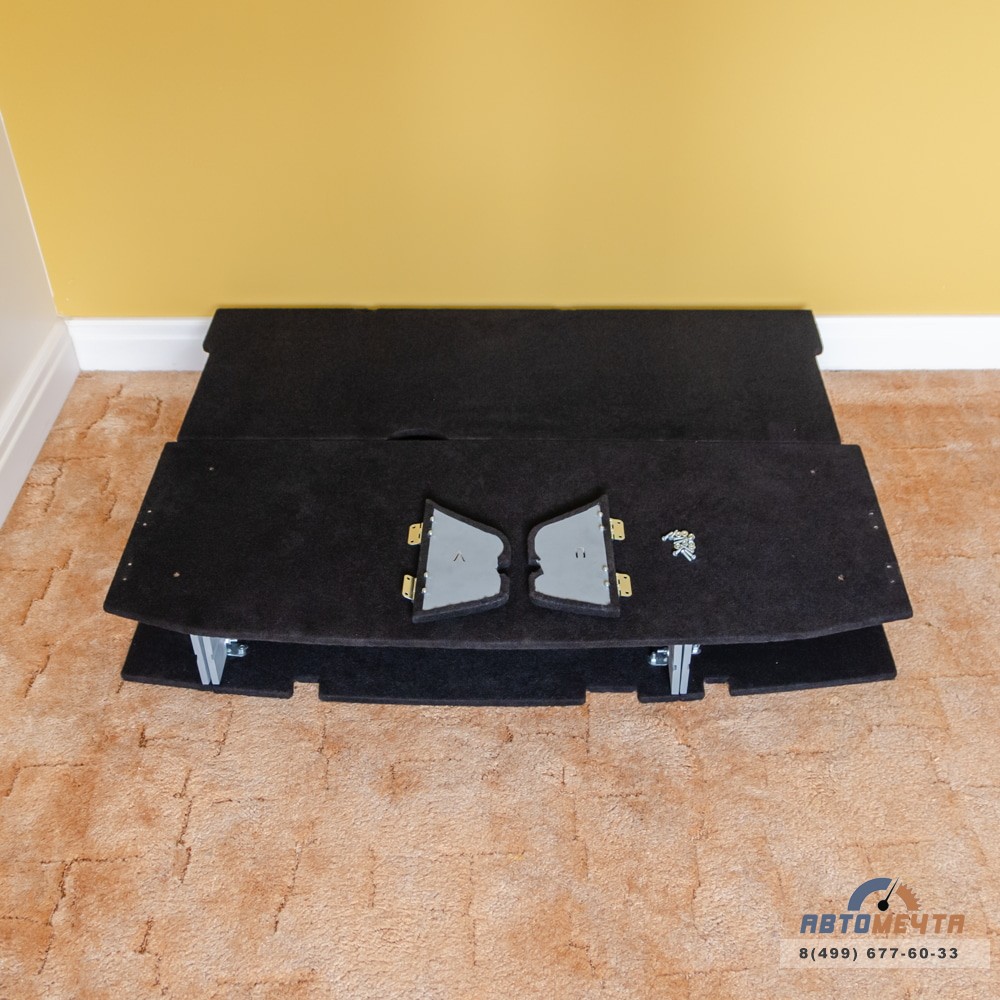 Органайзер выполнен из влагостойкой фанеры на высокоточном фрезерном станке с ЧПУ. Профиль рассчитан до миллиметра, потому что мы проектируем изделия с помощью 3D сканирования багажного отделения.