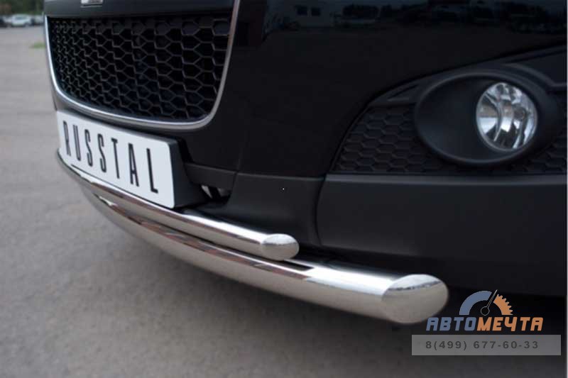 Защита переднего бампера из нержавейки (кенгурятник) для Chevrolet Captiva 2012 представляет собой двойную трубу в форме дуги из полированной нержавеющей стали диаметром 76 мм и 42 мм соответственно. Представленная Вам защита переднего бампера, или как ее еще называют кенгурятник, подвергается электро-плазменной обработке. Это дает еще большую защиту от коррозию и более ровную и гладкую поверхность. В комплект входят крепежные элементы и инструкция по установке.