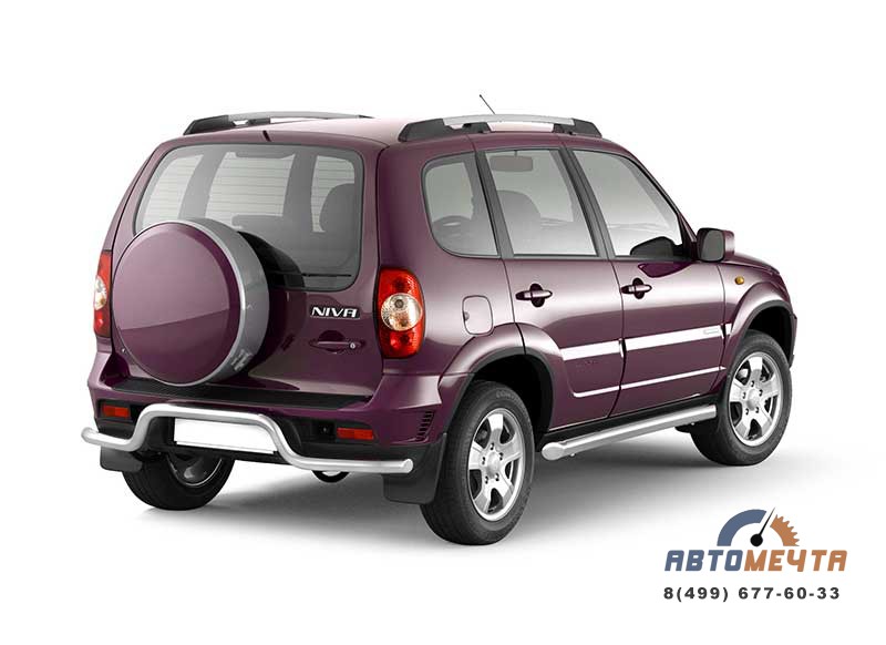 Защита Ø76мм порогов вогнутые трубы для CHEVROLET NIVA 2009 – усиленная декоративно-защитная конструкция, эффективная при боковом ударе на малых скоростях и выполняющая функцию опоры для облегчения погрузки/ выгрузки или поддомкрачивания авто. Полированные поверхности стойки к воздействию любой химии и истиранию, при этом зеркальный блеск отлично поддерживается полированием.