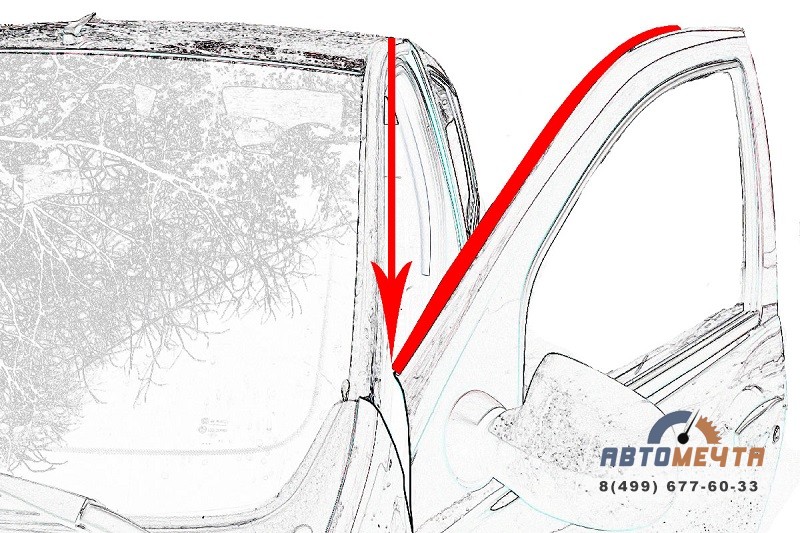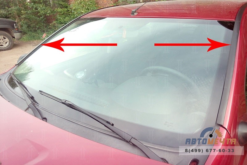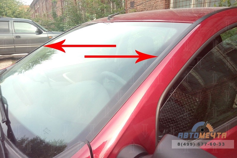 - Начать установку с нижней части стойки лобового стекла.