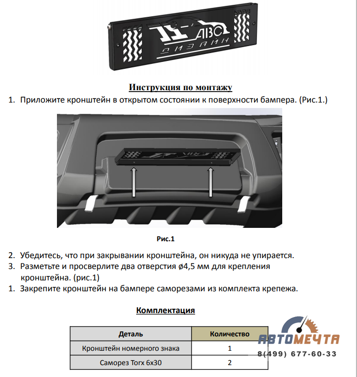 Конструкция кронштейна имеет шарнирное соединение с площадкой под государственный регистрационный номерной знак. На металлической площадке размещены запрессованные резьбовые втулки для надежного крепления Госзнака, что дает возможность установить Знак в соответствии с утвержденными стандартами. Перемещение транспортного средства с поднятой площадкой кронштейна по дорогам общего пользования запрещено.