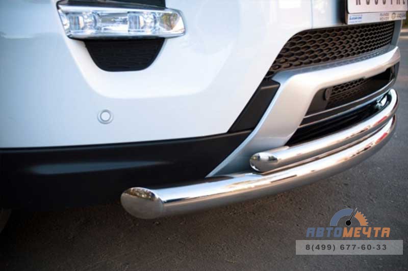 Защита переднего бампера из нержавейки (кенгурятник) для Land Rover Range Rover Evoque Dynamic 2011- представляет собой двойную трубу в форме дуги из полированной нержавеющей стали диаметром 63 мм и 42 мм соответственно. Представленная Вам защита переднего бампера, или как ее еще называют кенгурятник, подвергается электро-плазменной обработке. Это дает еще большую защиту от коррозию и более ровную и гладкую поверхность. В комплект входят крепежные элементы и инструкция по установке.