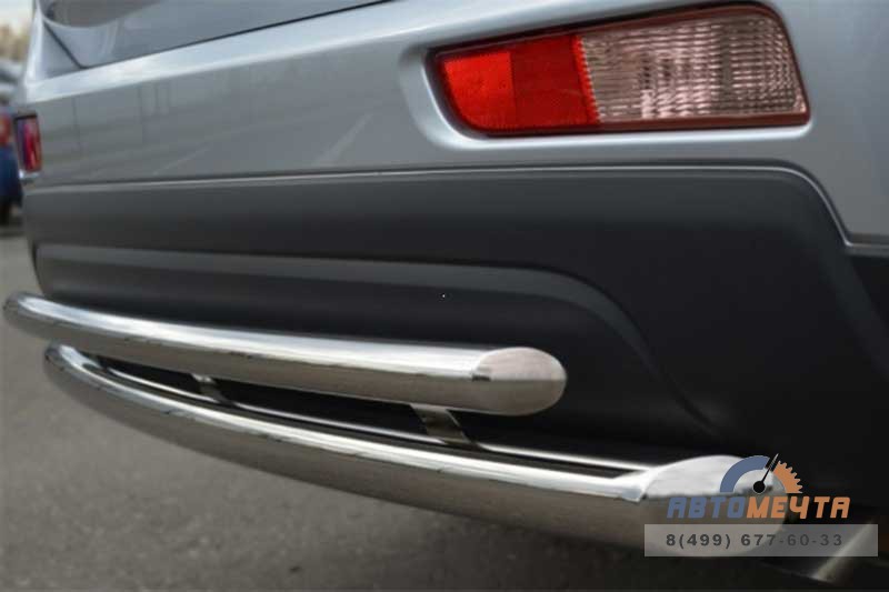 Защита заднего бампера на Mitsubishi Outlander 2012 представляет собой двойную трубу в форме дуги из итальянской нержавеющей стали диаметром 63 мм и 42 мм соответственно. Данная защита бампера предохранит кузов Вашего автомобиля от повреждений и придаст внедорожнику индивидуальности и брутальности.