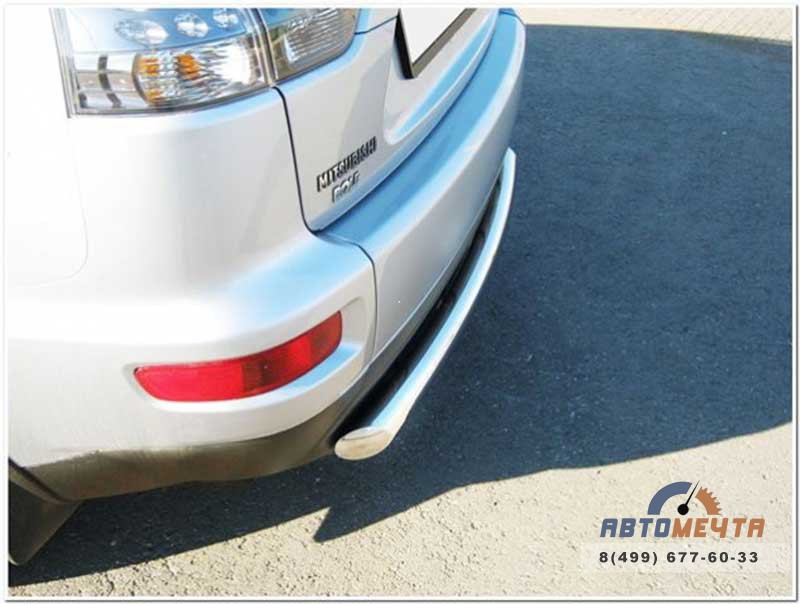 Защита заднего бампера для Mitsubishi Outlander XL 2010-, d76 мм (дуга) Защита заднего бампера на Mitsubishi Outlander XL 2010- представляет собой трубу из нержавеющей стали марки AISI 304 диаметром 76 мм . Данная защита бампера предохранит кузов Вашего автомобиля от повреждений и придаст внедорожнику индивидуальности и брутальности.