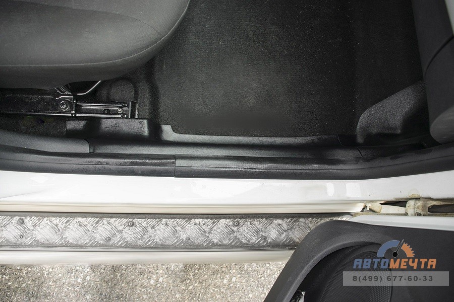 Защитные накладки устанавливаются на внутренней части проемов передних и задних дверей автомобиля, под педаль, фиксируются лентой-липучкой Velcro и штатным уплотнителем согласно приложенной инструкции. Процесс установки не требует применение клея или скотча. Монтаж накладки довольно прост и не требует сверления кузова автомобиля.