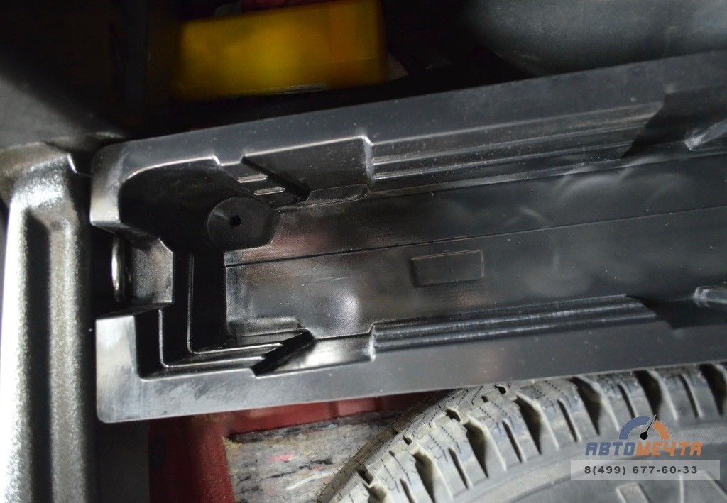 Данная модель – бюджетный вариант и подходит для водителей, которые не перевозят тяжёлые грузы, но хотят модернизировать и улучшить багажное пространство. Органайзер выполнен из пластика (около 3,5 мм), который формирует ровную поверхность. Это значительно лучше и практичнее, чем штатный пенопластовый органайзер. Сверху деталь обтянуту карпетом отличного качества, что упрощает уход за багажником. Поставляется в разобранном виде. Устанавливается на штатные места с помощью крепежа. Всё необходимое для сборки идёт в комплекте.