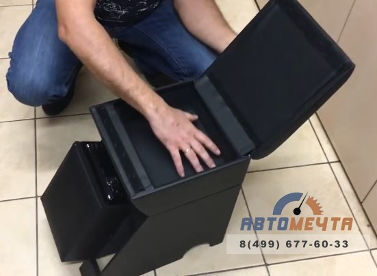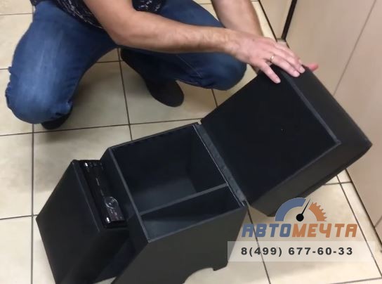 Подлокотник Комфорт Люкс Двойной для УАЗ Хантер изготовлен из влагостойкой фанеры и обшит экокожей, что увеличивает срок его эксплуатации. Внутри подлокотник обтянут карпетом и представляет собой вместительный ящик для личных вещей. Установка занимает менее минуты, без креплений и саморезов. Подлокотник крепко сидит за счет плотной посадки на консоль.