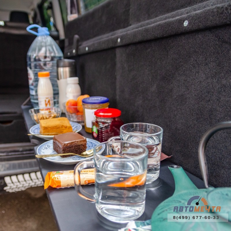 Особенностью задней двери УАЗ Патриота является то, что при полном открытии она поднимается на достаточно большой угол. Поэтому, когда Вы стоите на ровной дороге, открытая задняя дверь как-бы смотрит вверх. Мы это учли и разработали стол таким образом, что столешница открывается под таким же углом, как и дверь и в итоге она параллельна земле. Это очень важный момент, т.к. если бы это не было учтено, то на ровной дороге стол бы был под углом, что не удобно!