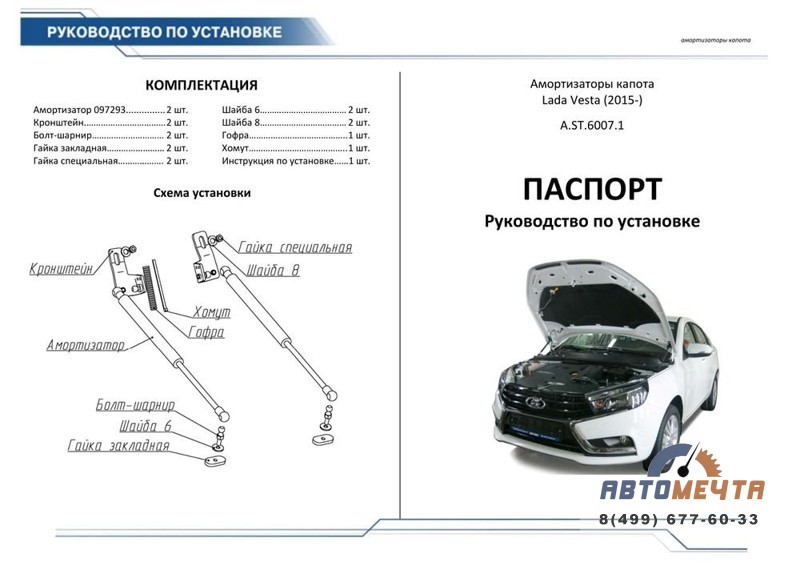 Как заказать Упоры капота Lada Веста седан, универсал 2015-09.2017 (2 шт.)?