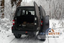 Задний силовой бампер УАЗ Патриот с правой калиткой под запаску. Упоры под реечный домкрат, буксирные проушины, квадрат 50х50.