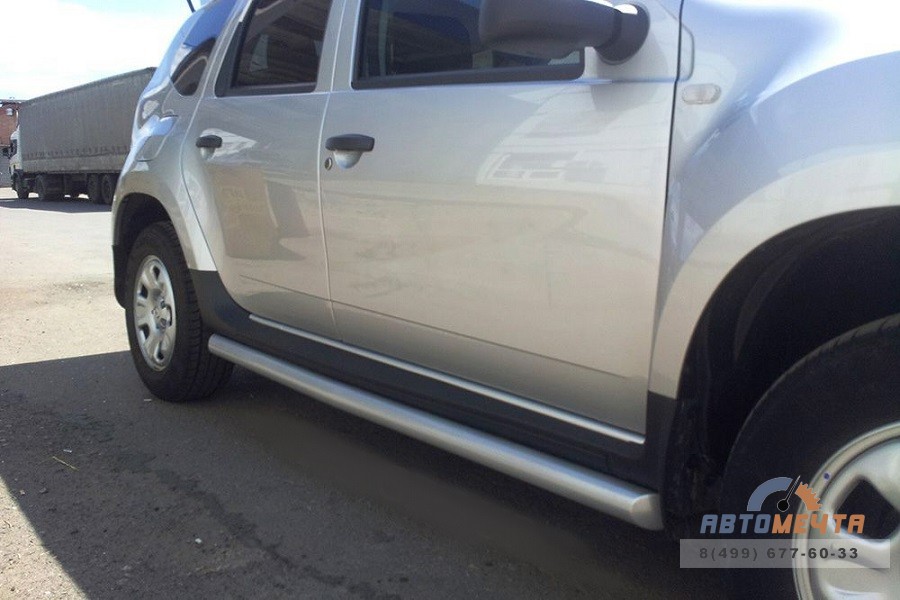 Защита порогов вогнутые на Renault DUSTER изготавливается из стали Ст3. Стальная труба диаметром 63 мм окрашивается порошковой краской.