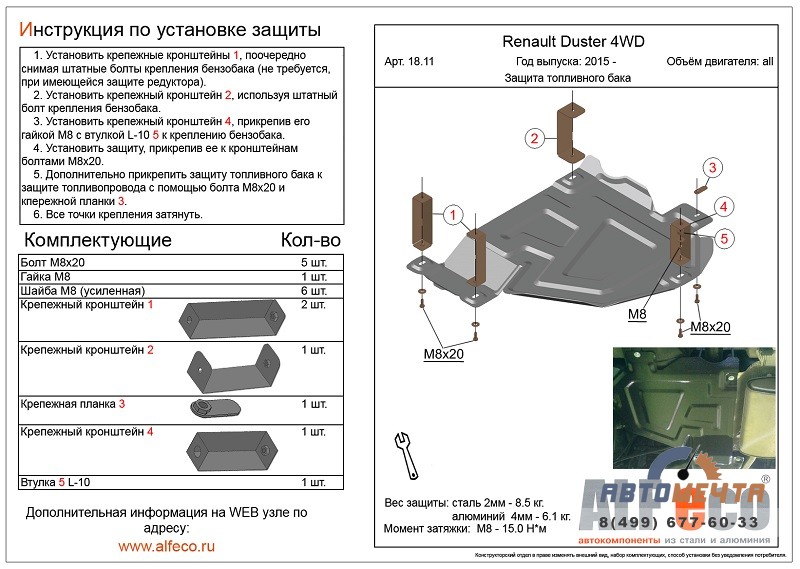 Как заказать Защита топливного бака Рено Дастер с 2015 V-все, 4х4?
