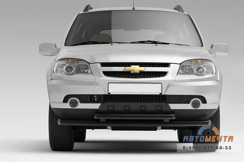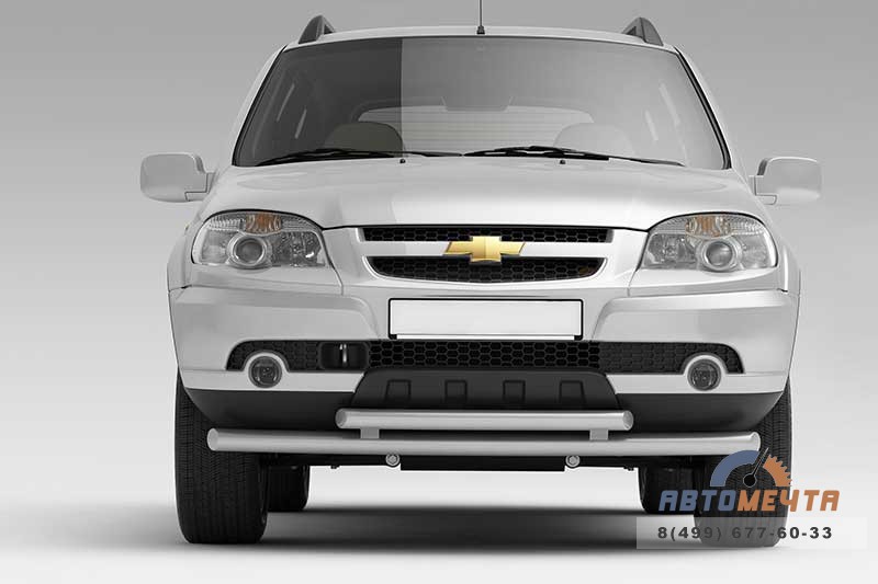 Защита переднего бампера двойная Ø63/51мм окрашенная для CHEVROLET NIVA 2009 стильный и недорогой декоративно защитный аксессуар, который представляет собой сдвоенную трубную конструкцию из качественной стали с керамо-полимерным покрытием, которое обладает высокой стойкостью к истиранию и воздействию химически активных веществ. Аксессуар эффективен в качестве защиты на малых скоростях, а также является оригинальным элементом внешнего тюнинга.