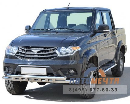 Как заказать Защита переднего бампера УАЗ Патриот-2015 двойная зубастая (нержавейка)?